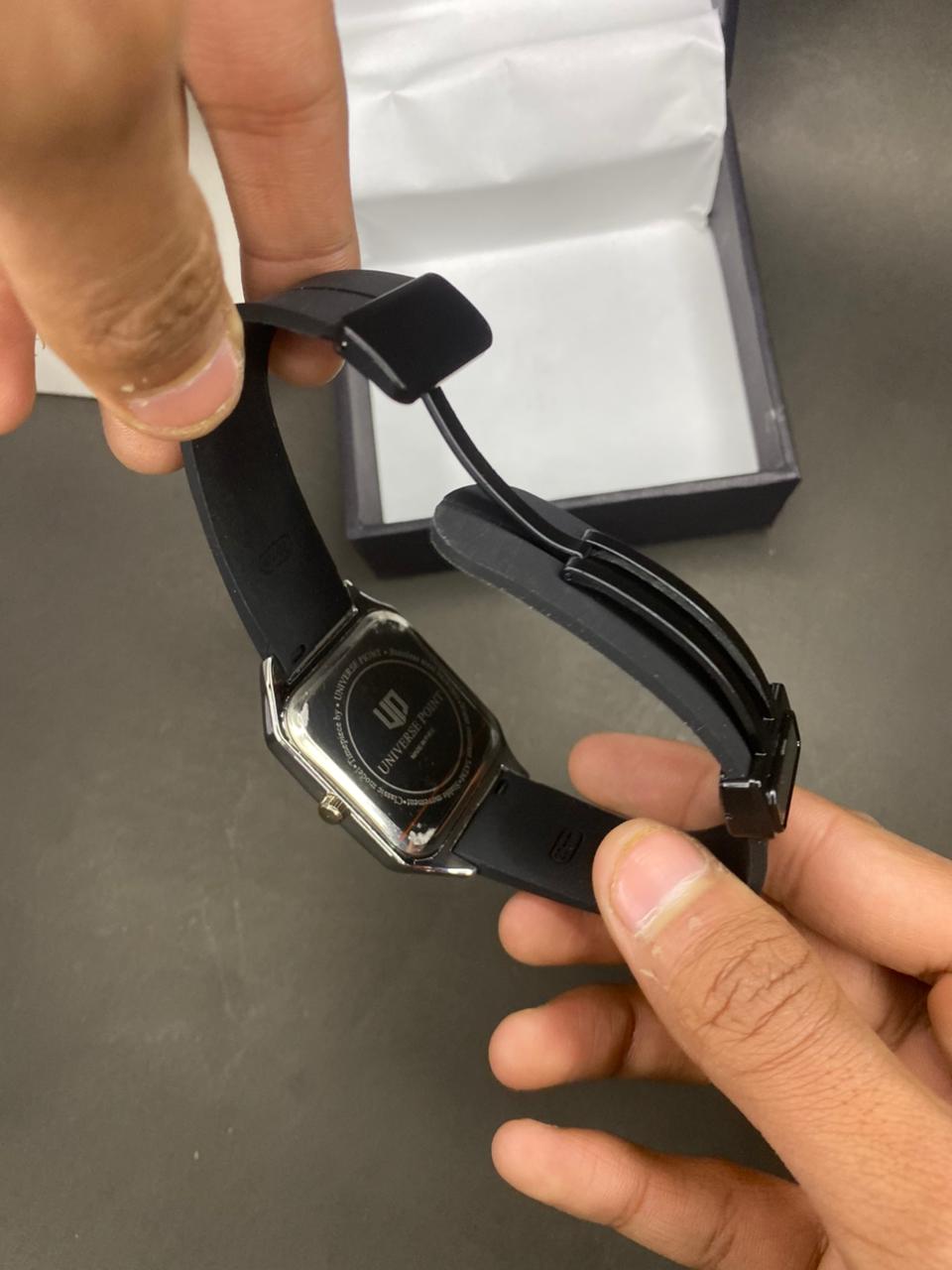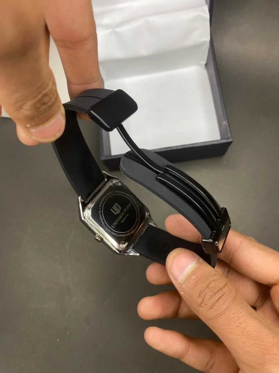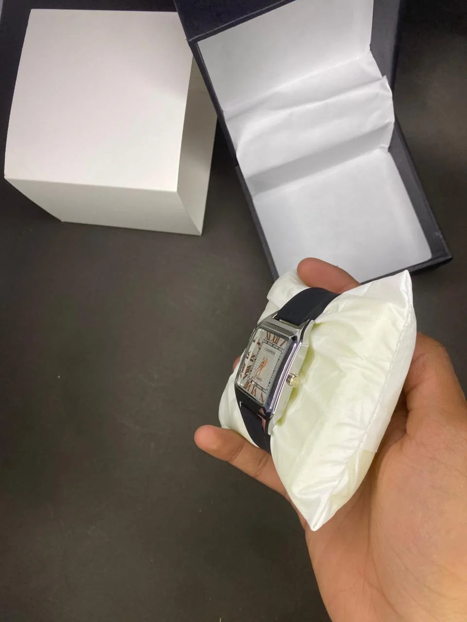Shape/Pattern: Iconic Square Case with a textured cream dial